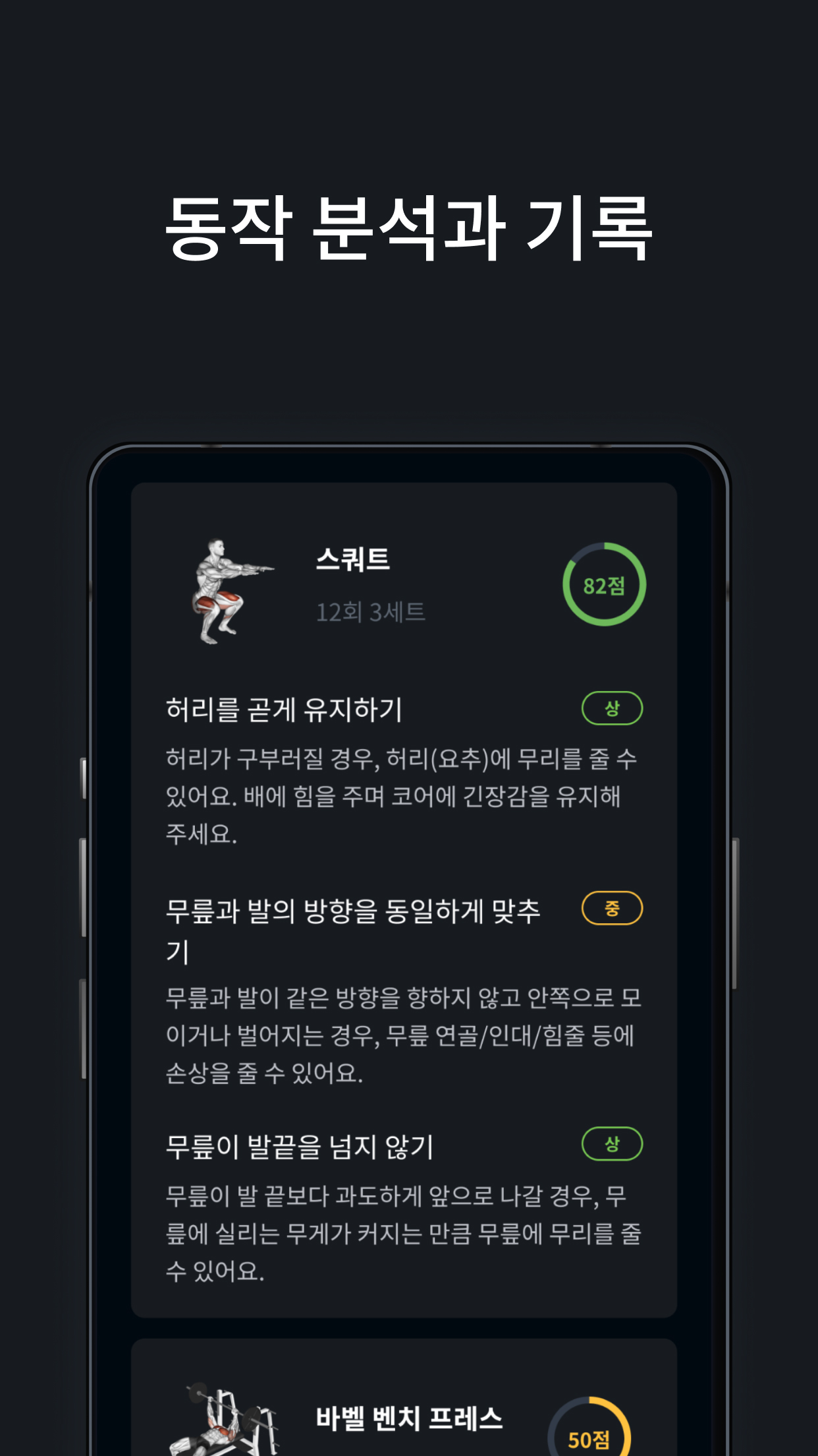 실시간 분석 및 부위별 피드백